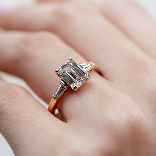 Anillo de Compromiso Baguette Sidestones Emerald